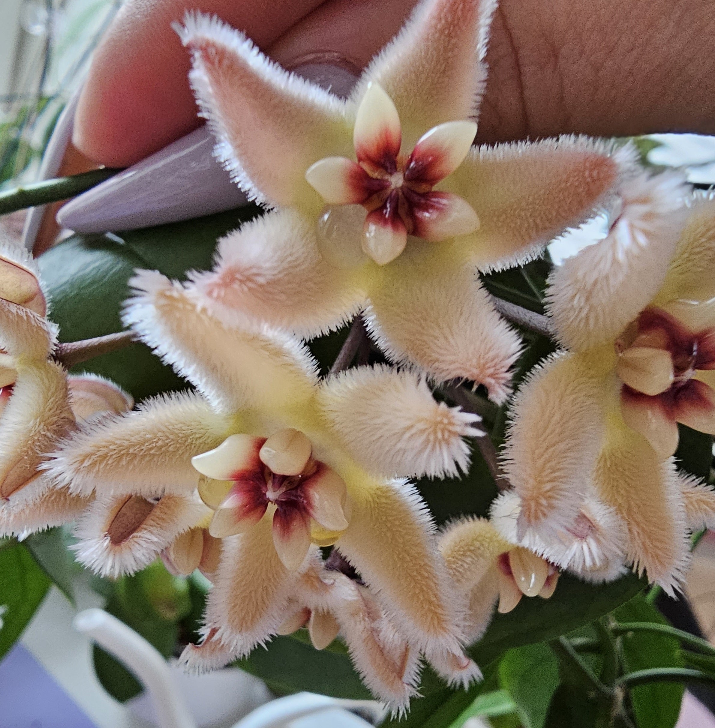 Wie bei einigen anderen auch, ist es auch bei mir meine Mutter gewesen, die mich mit der Sucht nach Pflanzen angesteckt hat. Sie schenkte mir eine Hoya pubicalyx. Ich hatte keine Zeit, musste los, aber Mama wollte, dass ich sie mitnehme. Also stellte sie sie mir in einen Eimer, so ein 10-Liter- Eimer. Nach dem Stress des Tages nahm ich die Pflanze (im Eimer) mit nach Hause und stellte sie (mit dem Eimer) auf die Fensterbank. Genau genommen wollte ich sie gar nicht haben, denn bei mir stirbt alles. Kakteen werden überwässert, alles andere vertrocknet, und Efeu hat nach spätestens 7 Tagen ein Spinnmilbenbefall, den die Welt noch nicht gesehen hat.